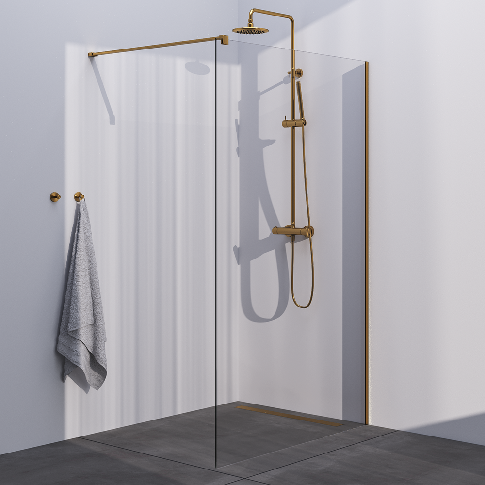 BRAUER Gold Season Inloopdouche set 1 helder glas 130x200 met muurprofiel goud geborsteld GS-ISMP1H130200GG