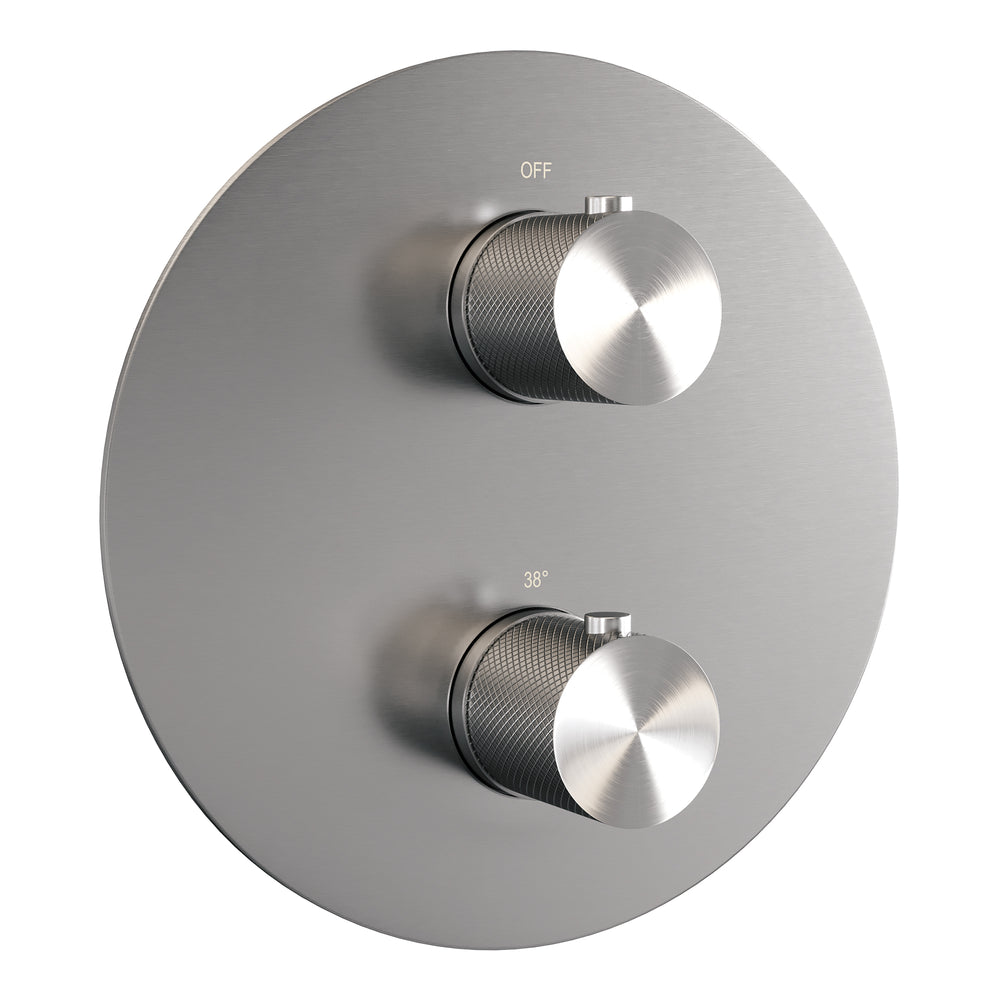 BRAUER Brushed Carving thermostatische inbouw regendouche 3-weg rond SET 90 met 30 cm douchekop en plafondarm en staaf handdouche en doucheslang en geïntegreerde glijstang RVS geborsteld PVD 5-NG-308