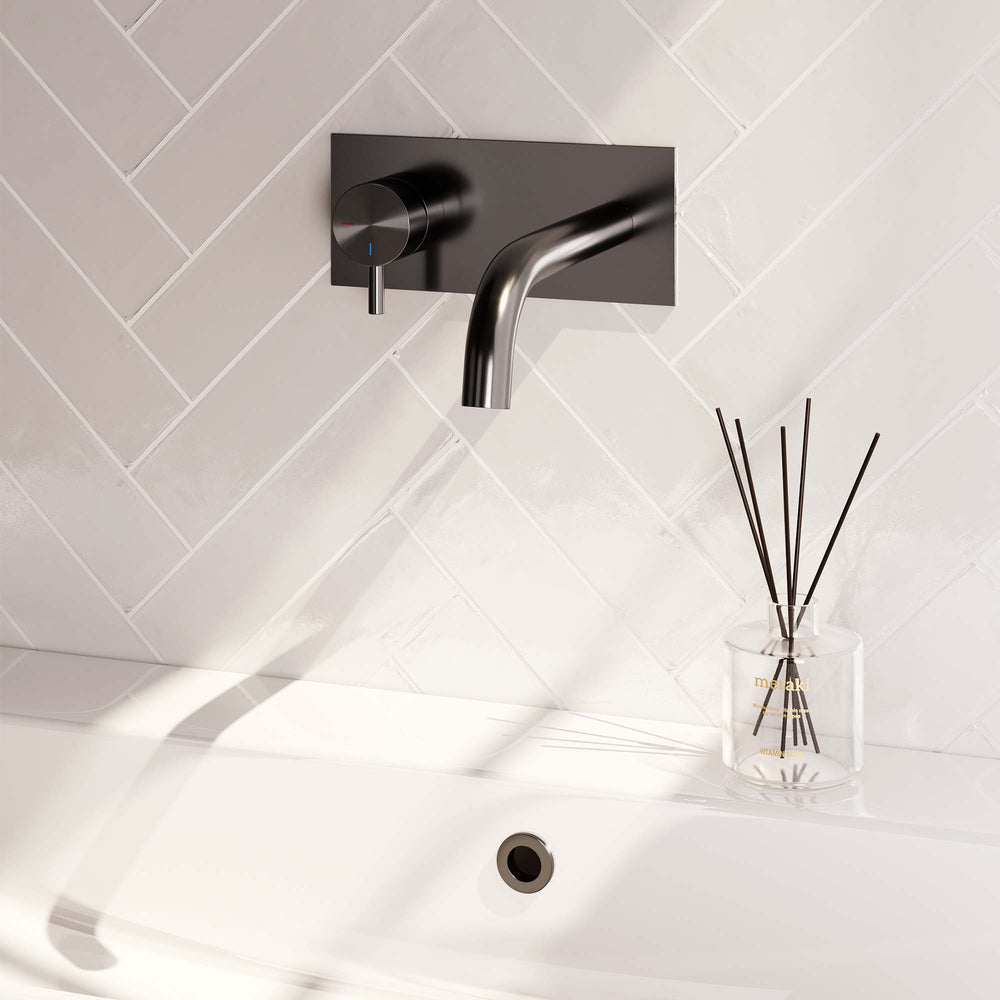 BRAUER Gunmetal Edition inbouw wastafelmengkraan met gebogen uitloop en afdekplaat model B2 gunmetal geborsteld PVD 5-GM-083-B5
