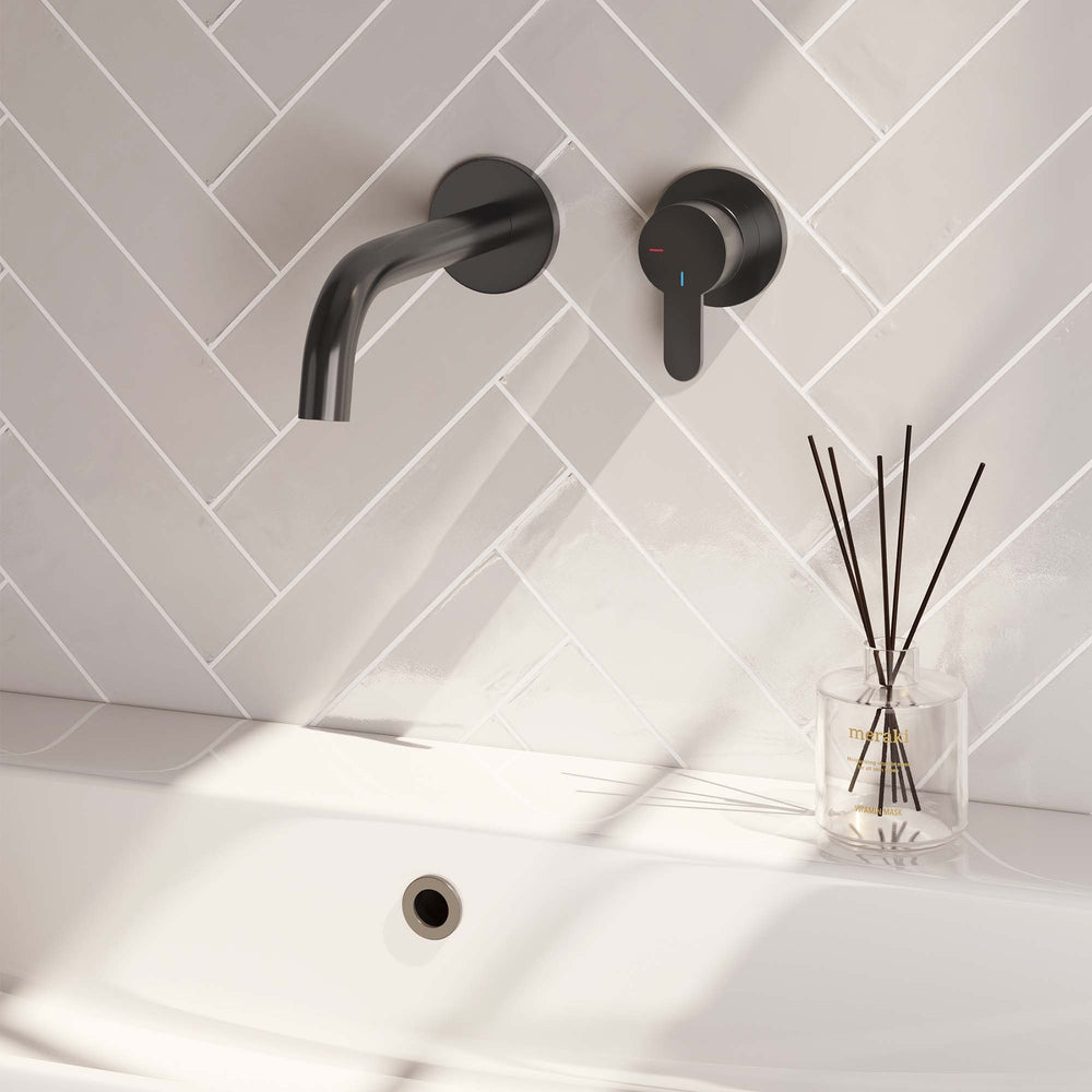BRAUER Gunmetal Edition inbouw wastafelmengkraan met gebogen uitloop en rozetten model D1 gunmetal geborsteld PVD 5-GM-004-B4-65 is nabesteld en wordt verzonden zodra het weer op voorraad is.
