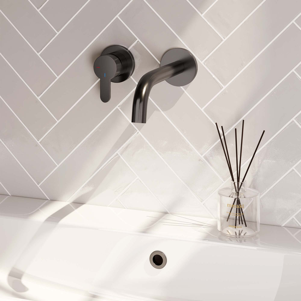 BRAUER Gunmetal Edition inbouw wastafelmengkraan met gebogen uitloop en rozetten model D2 gunmetal geborsteld PVD 5-GM-083-B4-65 is nabesteld en wordt verzonden zodra het weer op voorraad is.