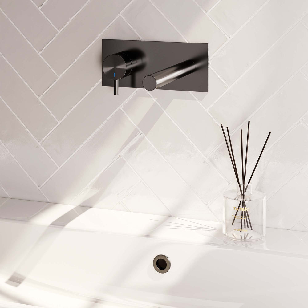 BRAUER Gunmetal Edition inbouw wastafelmengkraan met rechte uitloop en afdekplaat model B2 gunmetal geborsteld PVD 5-GM-083-S5