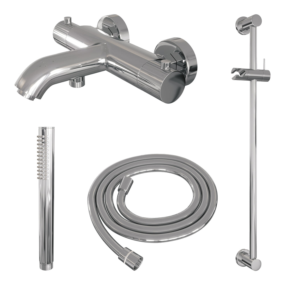 BRAUER Stripe opbouw baddouche thermostaatkraan SET 01 met glijstang en staaf handdouche en doucheslang chroom 5-CE-340