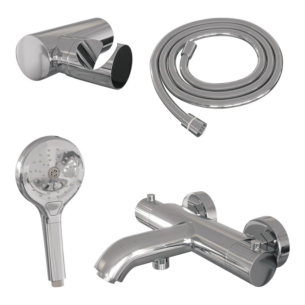 BRAUER Stripe opbouw baddouche thermostaatkraan SET 04 met wandhouder en 3-standen handdouche en doucheslang chroom 5-CE-343