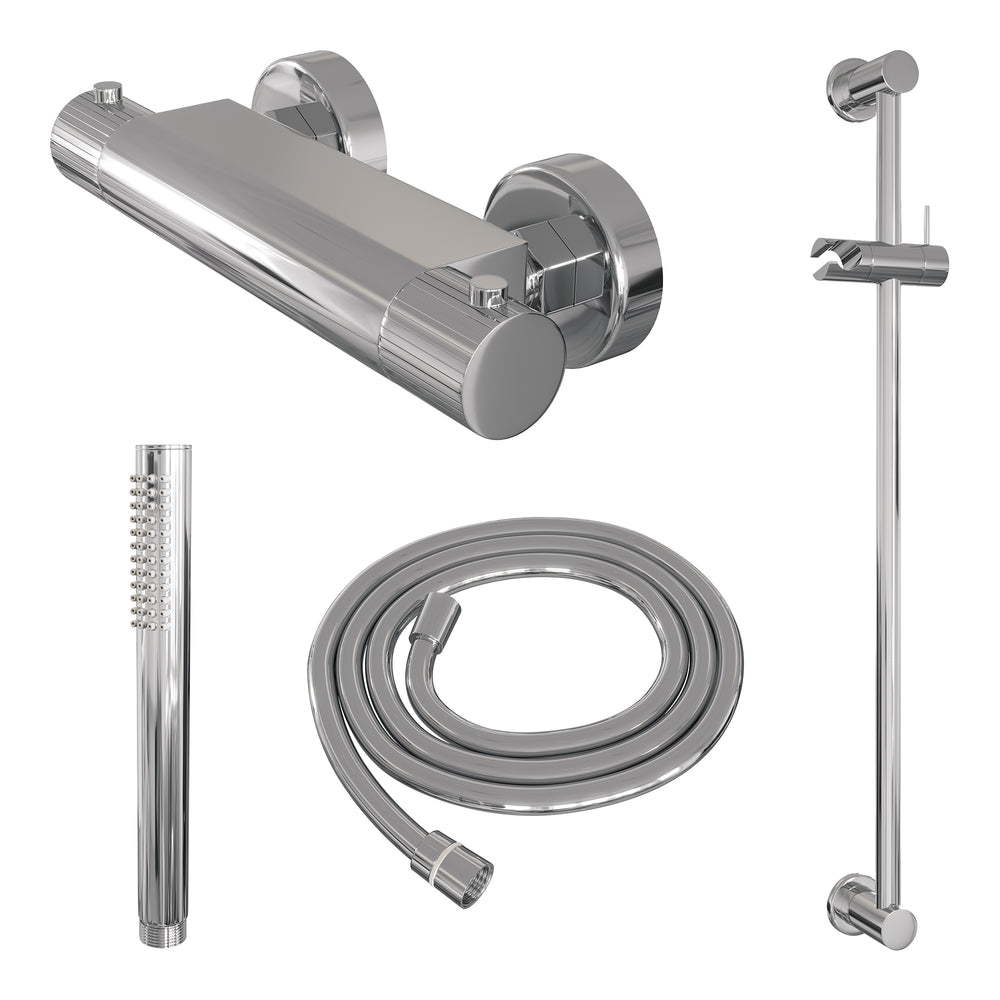 BRAUER Stripe opbouw douche thermostaatkraan SET 01 met glijstang en staaf handdouche en doucheslang chroom 5-CE-345
