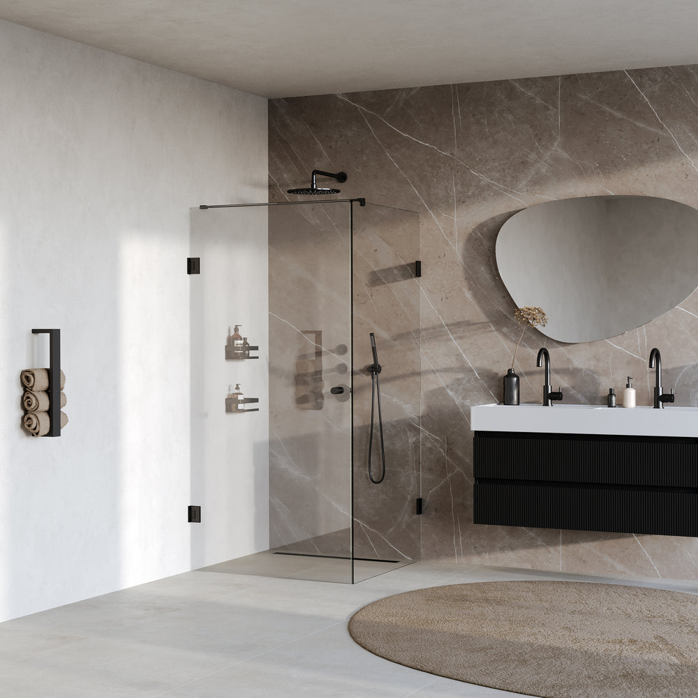 BRAUER Void Carving douchecabine met draaideur helder glas 100x100x200 incl. glascoating mat zwart GS-VOCC1H100100200MZ