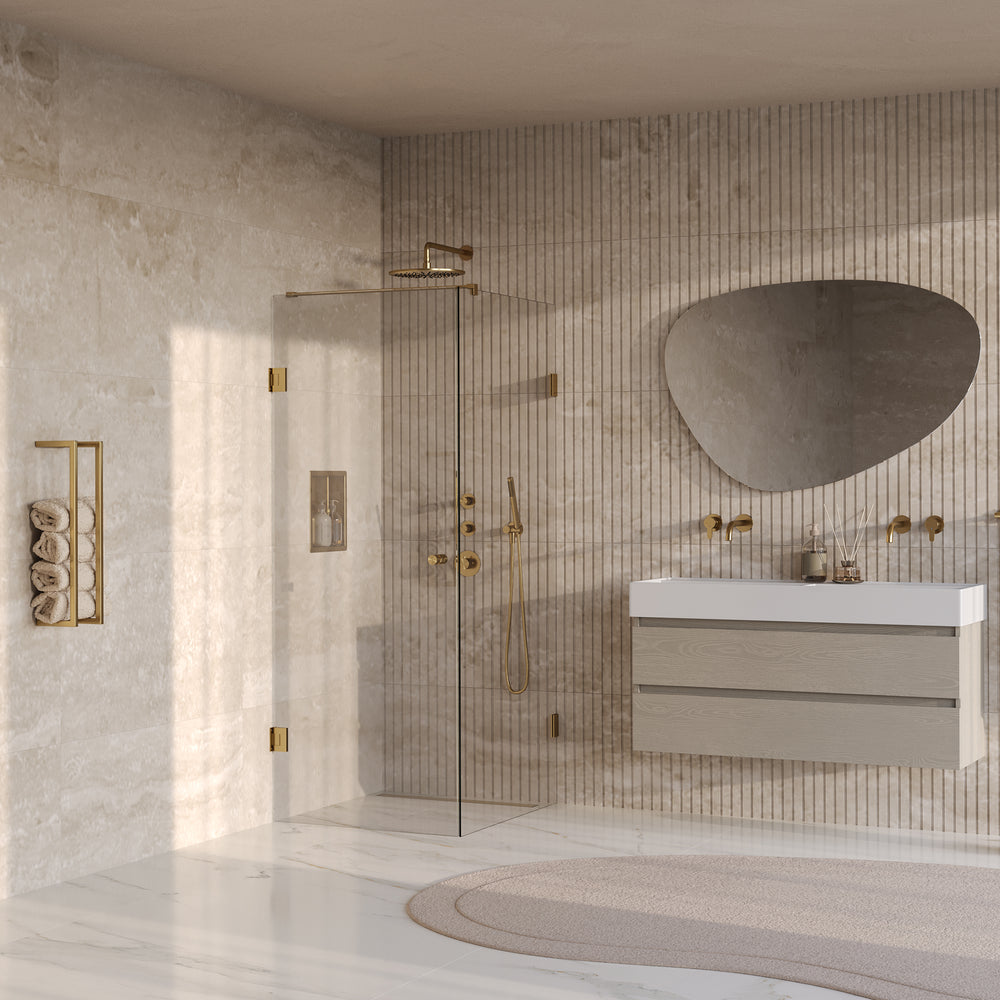 BRAUER Void Carving douchecabine met draaideur helder glas 90x100x200 incl. glascoating PVD goud geborsteld GS-VOCC1H90100200GG