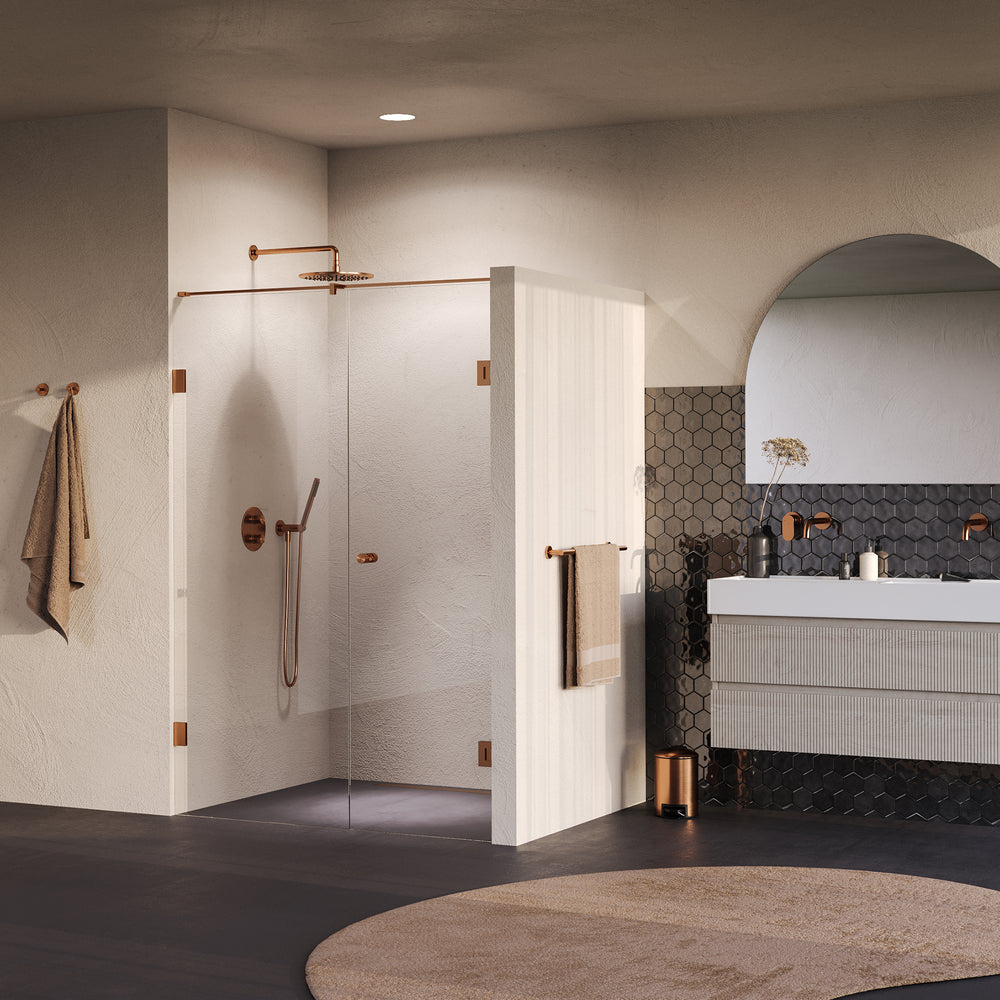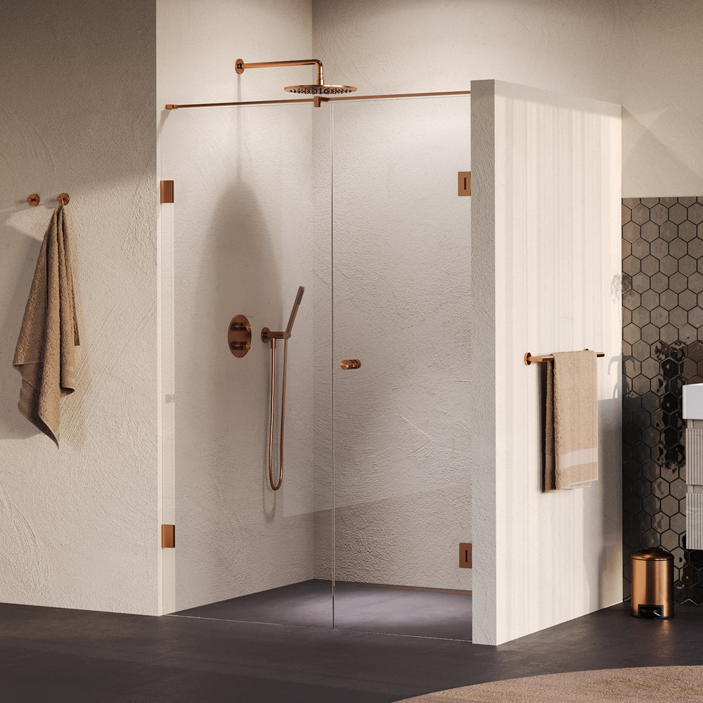 BRAUER Void Carving nisdeur 2-delig helder glas 140x200 omkeerbaar met draaideur 70 aan muur incl. glascoating PVD koper geborsteld GS-VOCN2H7070200GK is nabesteld en wordt verzonden zodra het weer op voorraad is.