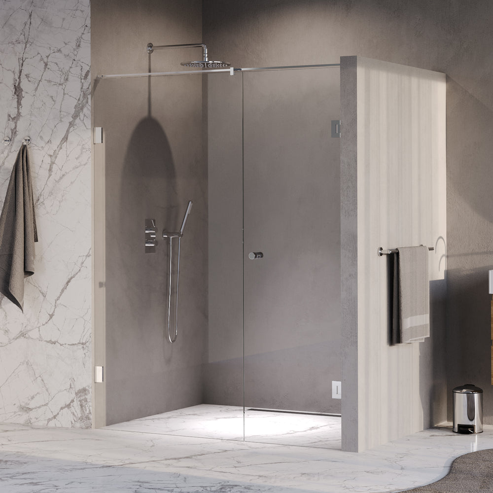 BRAUER Void Carving nisdeur 2-delig helder glas 160x200 omkeerbaar met draaideur 70 aan muur incl. glascoating chroom GS-VOCN2H7090200CE