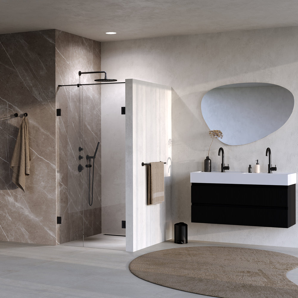 BRAUER Void Carving nisdeur 2-delig helder glas 90x200 omkeerbaar met draaideur 60 aan muur incl. glascoating mat zwart GS-VOCN2H6030200MZ