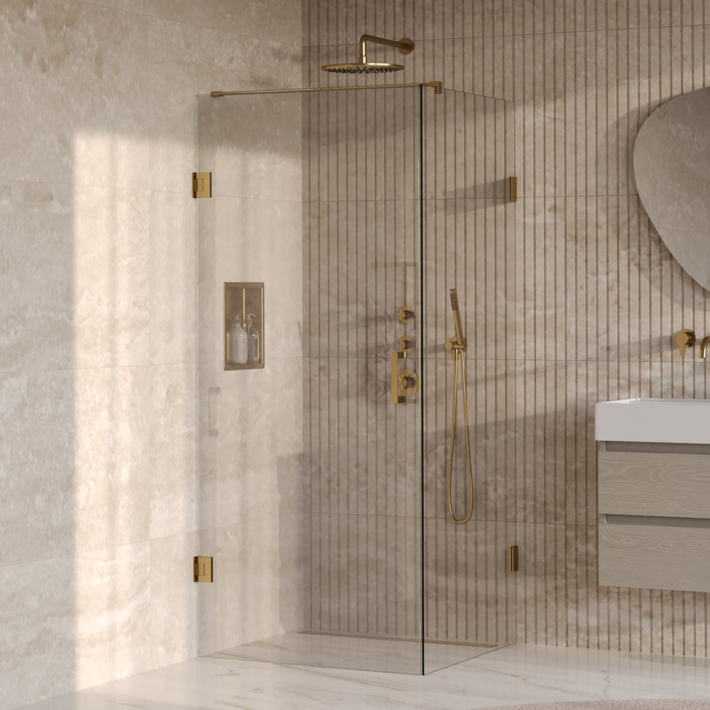 BRAUER Void douchecabine met draaideur helder glas 90x90x200 incl. glascoating PVD goud geborsteld GS-VOC1H9090200GG