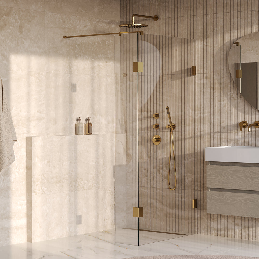 BRAUER Void inloopdouche helder glas 100x200 met 30 zijwand incl. glascoating PVD goud geborsteld GS-VOI2H10030200GG is nabesteld en wordt verzonden zodra het weer op voorraad is.