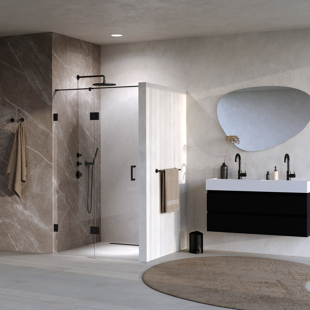 BRAUER Void nisdeur 2-delig helder glas 120x200 omkeerbaar met draaideur 60 aan glas incl. glascoating mat zwart GS-VON3H6060200MZ