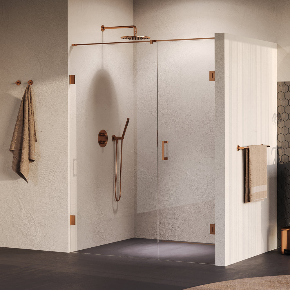 BRAUER Void nisdeur 2-delig helder glas 150x200 omkeerbaar met draaideur 70 aan muur incl. glascoating PVD koper GS-VON2H7080200GK