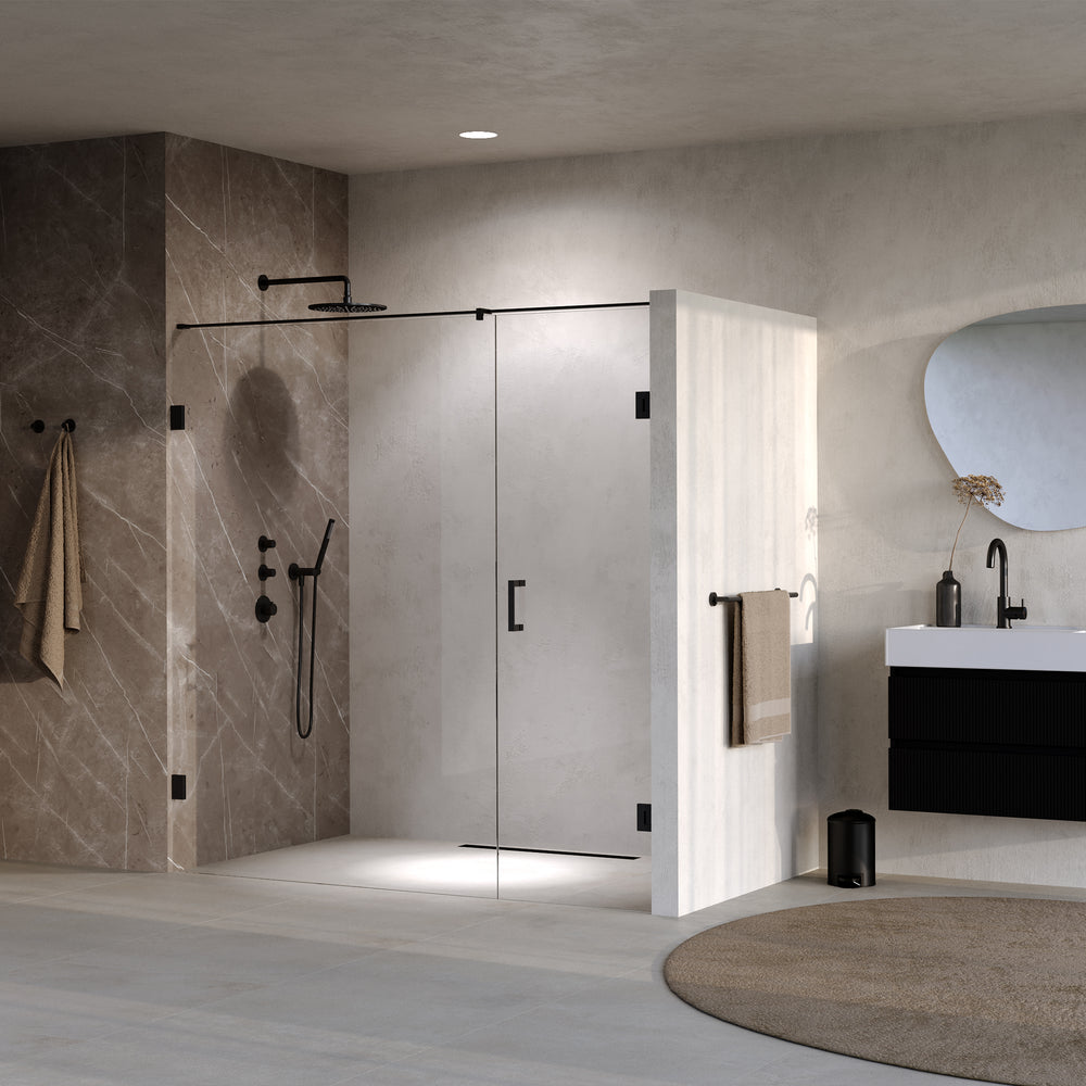 BRAUER Void nisdeur 2-delig helder glas 190x200 omkeerbaar met draaideur 70 aan muur incl. glascoating mat zwart GS-VON2H70120200MZ