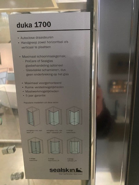 Showmodel Sealskin Duka 1700 2-delige draaideur 120cm is nabesteld en wordt verzonden zodra het weer op voorraad is.