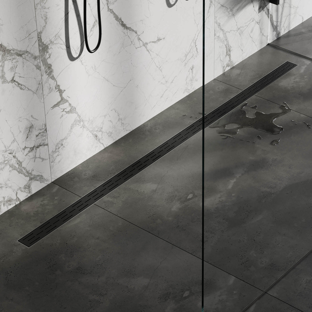 BRAUER Douchegoot met standaard rooster en flens 7 x 200 zwart DR-SRF200S