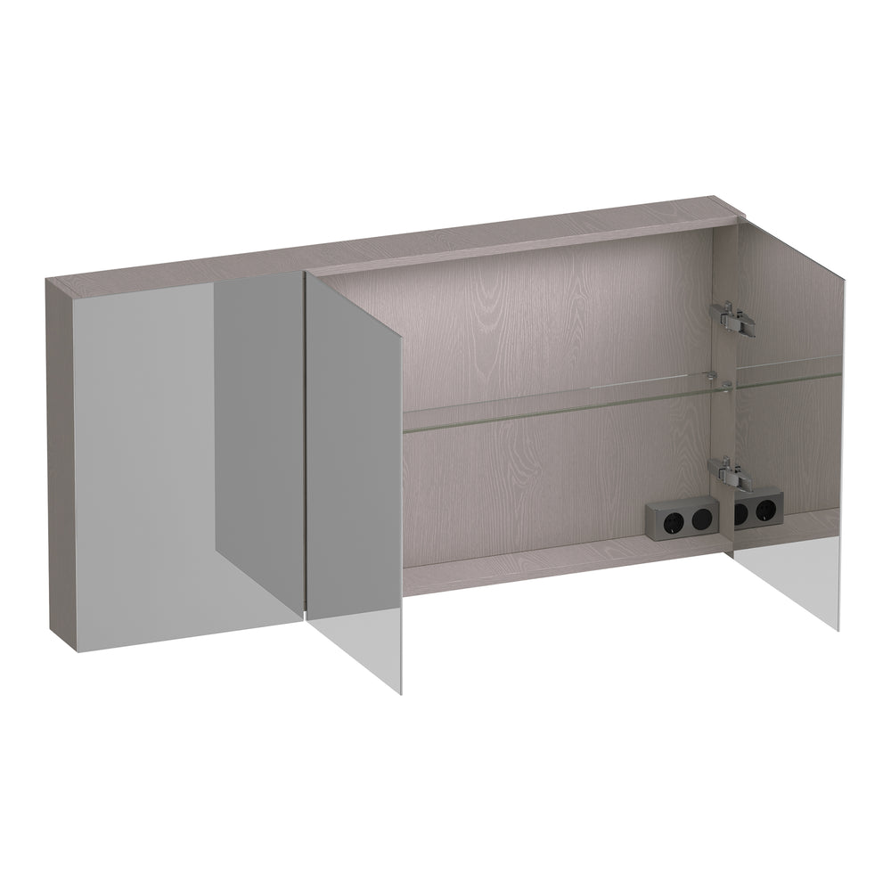 BRAUER Impress Deluxe spiegelkast 140 met interne en externe verlichting 3 dubbelzijdige spiegeldeuren Timber Greige SK-IMD140TE