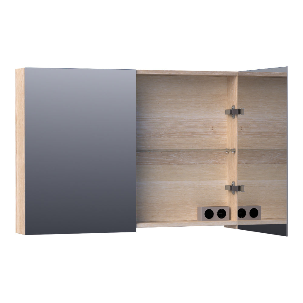 BRAUER Impress spiegelkast 100 zonder verlichting met 2 dubbelzijdige spiegeldeuren lamellen eiken wit SK-IM100LEW