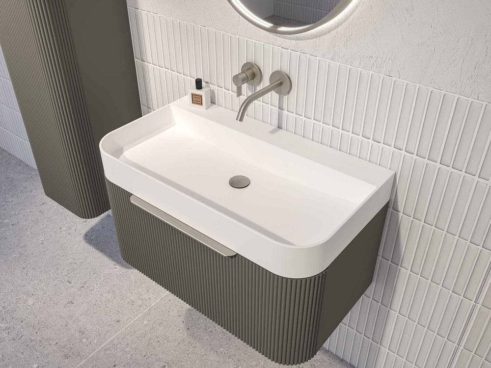 - Onderkasten | Deze zijn in principe universeel voor de verschillende wastafels, verkrijgbaar in een mooi kleurenpallet van diverse mooie, warme houtkleuren en vele mooie lakkleuren. Keuzes genoeg: onderkasten met grepen, greeploze kasten, een alu keerlijst of een houten keerlijst, enkele en dubbele ladekasten etc. Nieuw zijn ook de push-to-open ladesystemen en de extra hoge onderkasten voor extra opbergruimte. Alle badkameronderkasten zij voorzien van de allerbeste Duitse ladesystemen en scharnieren.